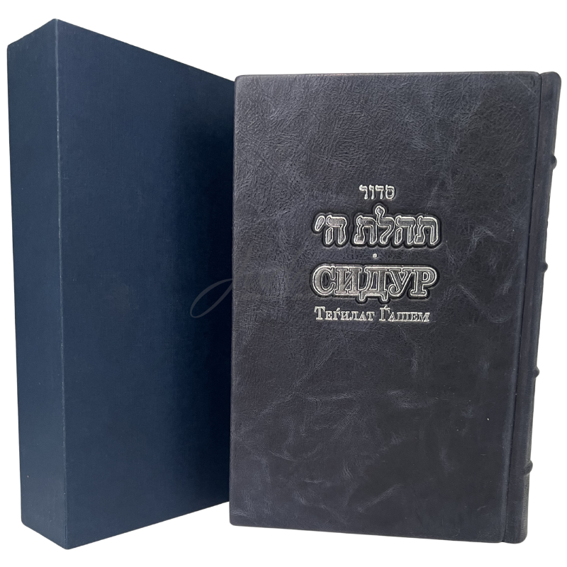 Подарочное издание Сидура Тегилат Гашем для будней и праздников на русском языке в кожаном переплете. Эксклюзивное оформление, клише кожаного переплета было разработано индивидуально для нашего магазина. Есть возможность именного оформления обложки. Несомненно, этот Сидур в кожаном переплете будет элитным подарком к любому празднику!