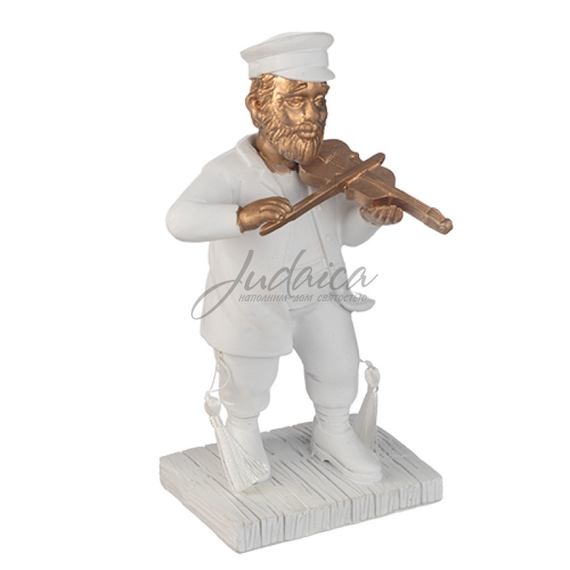 Статуэтка "Еврейский скрипач" изображает клезмера, исполняющего мелодию на скрипке. Выполнена в бело-золотых тонах с деталями традиционного костюма. Идеально подходит для украшения интерьера, коллекционирования или подарка. Символизирует еврейскую музыкальную культуру и традиции.