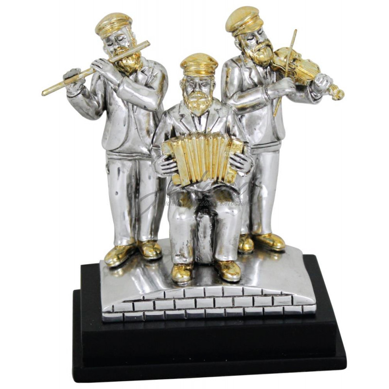 Фигурки хасидских музыкантов на сцене (скрипач,флейтист, аккордеонист)