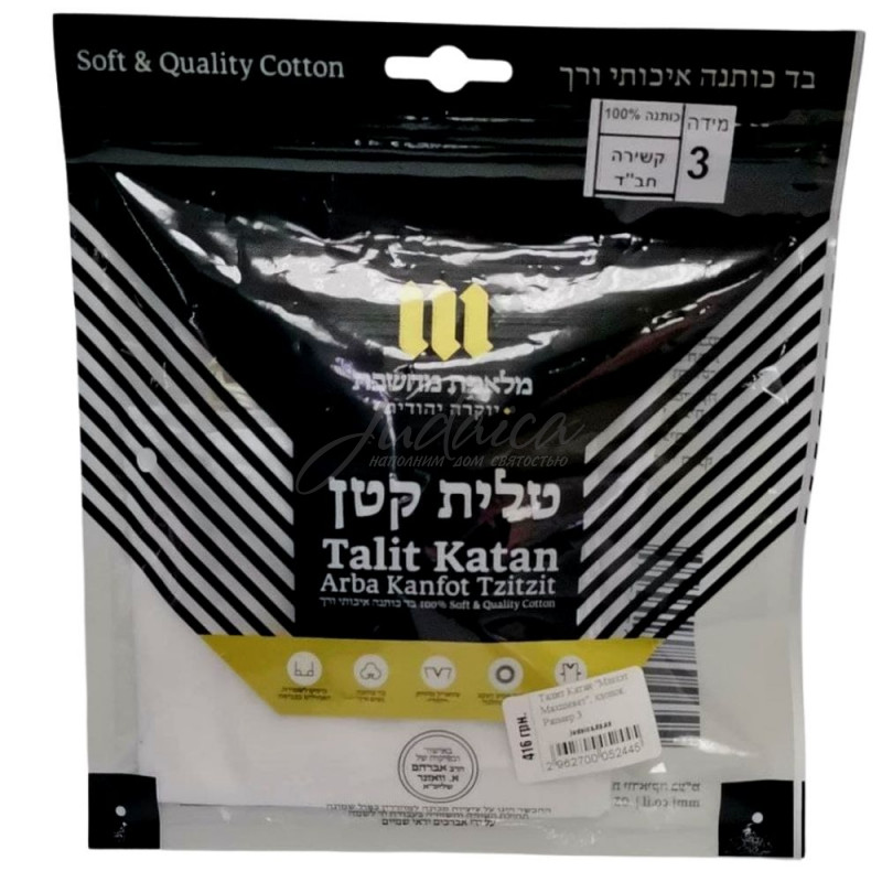 Талит Катан "Млехэт Махшевет", изготовлен из хлопка, ХаБаД. Размер 3